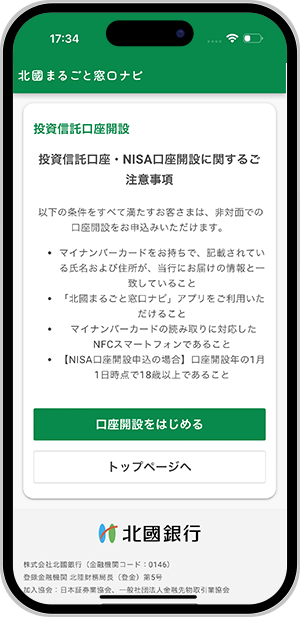 投信口座開設申込の場合、投信口座開設時点で18歳以上であること