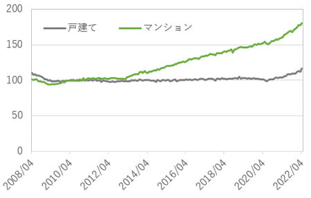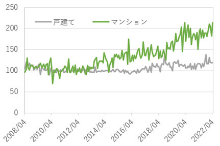 戸建てについては長い間横ばいでしたが、近年ウッドショックや資材不足により価格高騰しています。