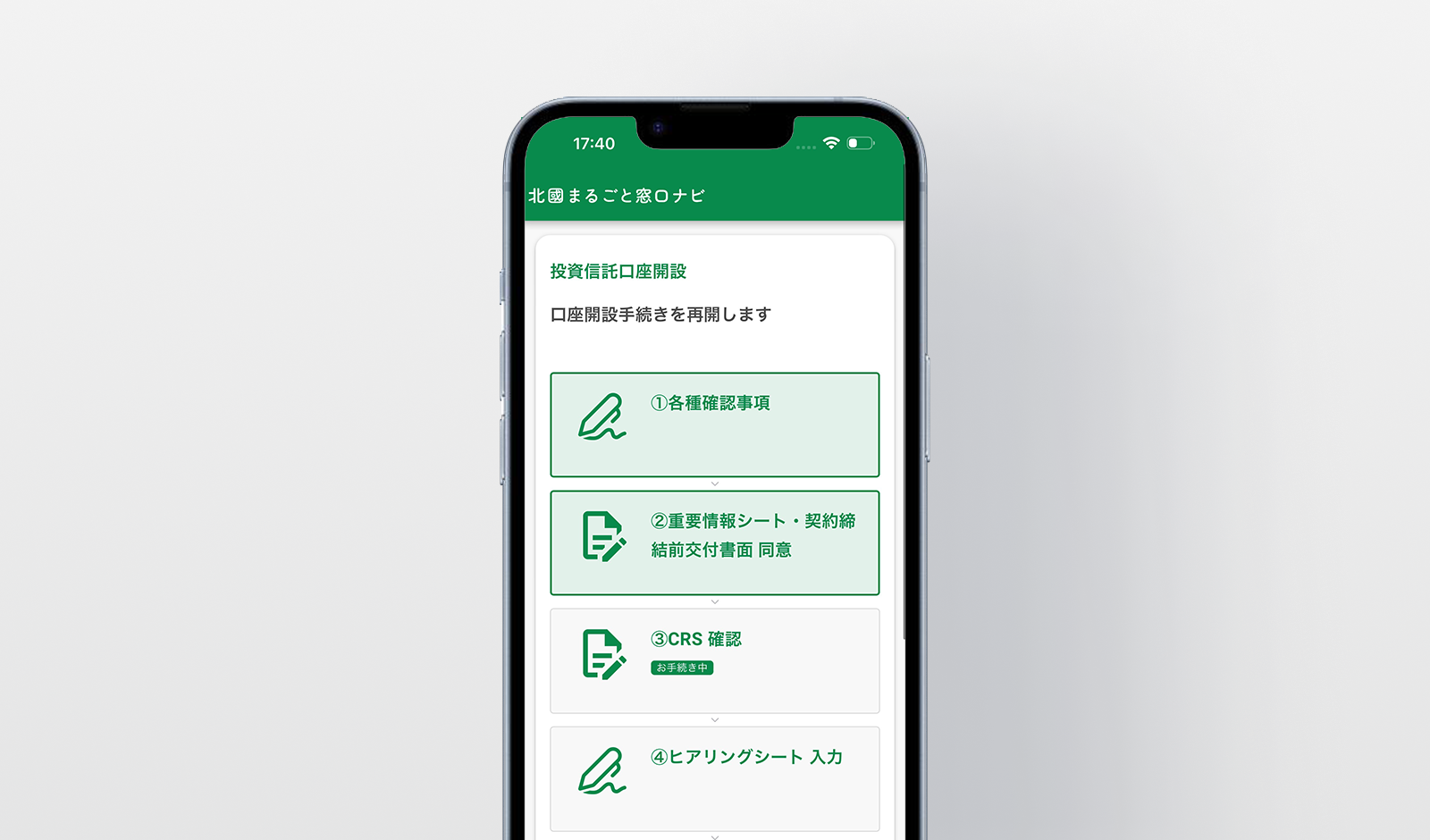 - 各種ローンのお申込からご契約まで、スマートフォン1つでお手続きできます。